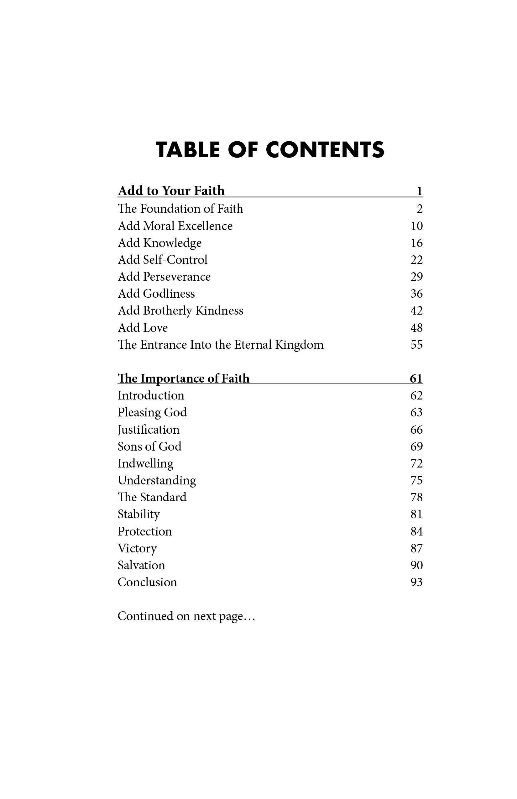Add to Your Faith defines each of these traits and contrasts how they are imperfectly manifested in a life without faith with how they are displayed when faith serves as the foundation. The book calls readers to cultivate an active, growing faith rather than a stagnant one.