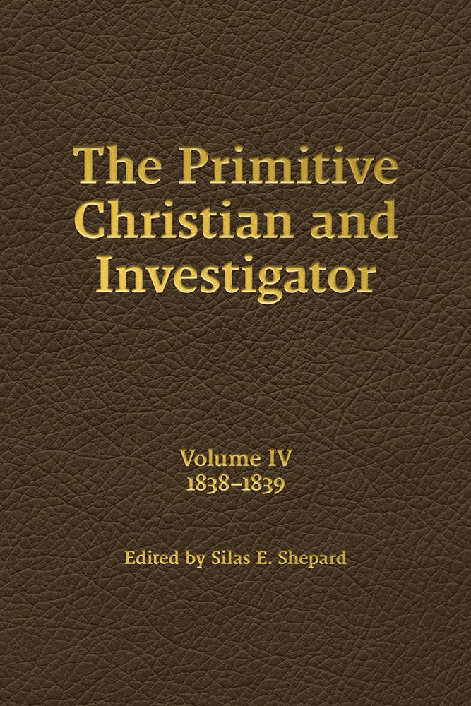 The Primitive Christian was a monthly magazine whose purpose was to call the attention of men back to the inspired word of God. It was edited by Silas E. Shepard (1801-1877) and published in Auburn, Cayuga County, New York. Echoing the Restoration plea, Shepard hoped that by returning to the facts of the Gospel and obedience to its commands, the friends of the Lord Jesus could unite. Much of the material in this journal was written by the editor but also includes articles, questions, correspondence, and critiques submitted by others.