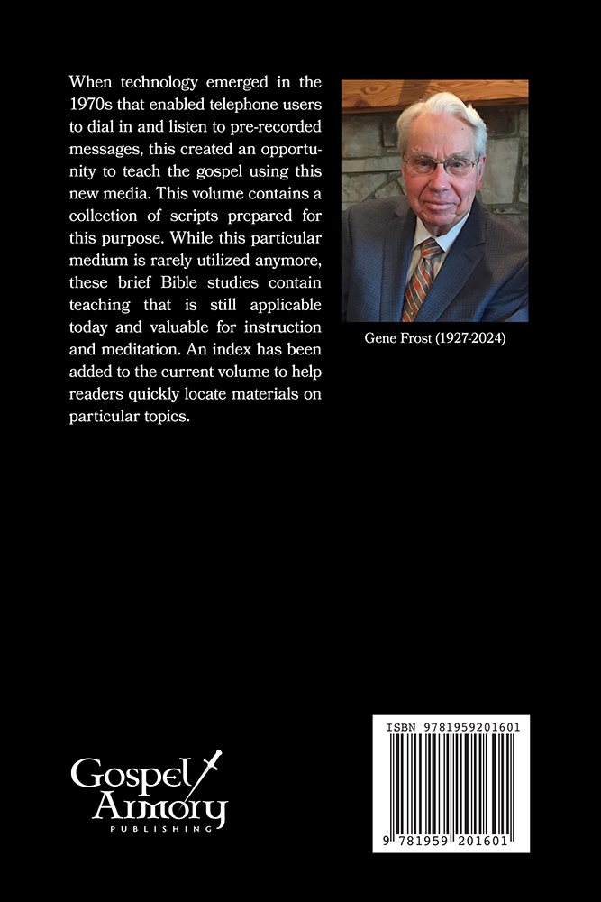 When technology emerged in the 1970s that enabled telephone users to dial in and listen to pre-recorded messages, this created an opportunity to teach the gospel using this new medium. This volume contains a collection of scripts prepared for this purpose. While this particular medium is rarely utilized anymore, these brief Bible studies contain teaching that is still applicable today and valuable for instruction and meditation. An index has been added to the current volume to help readers quickly locate materials on particular topics.